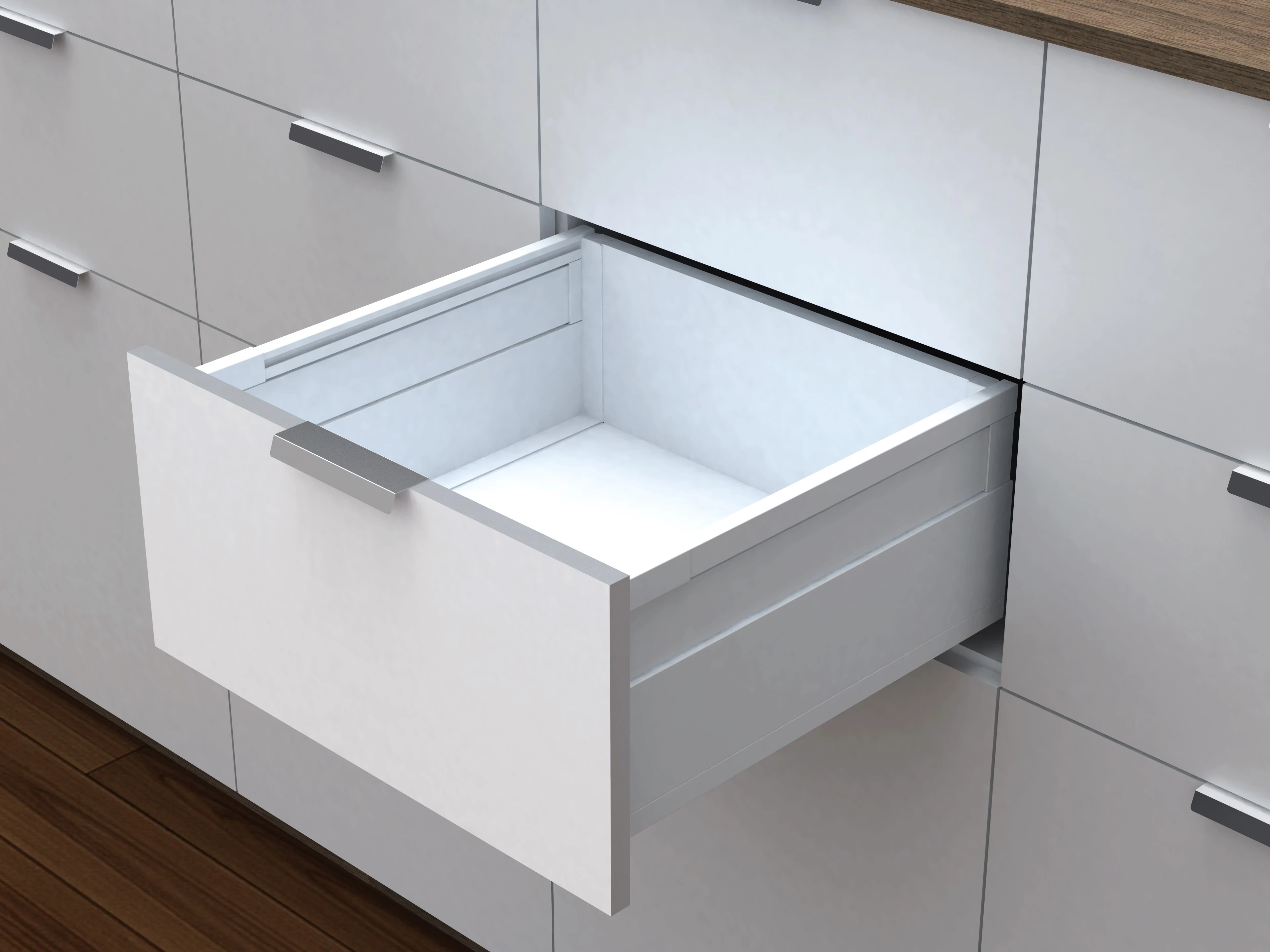 Fiókoldal RITMA Slim TR, szimpla szögletes korlátos, fehér, 270mm, 35kg, bm.: 224mm