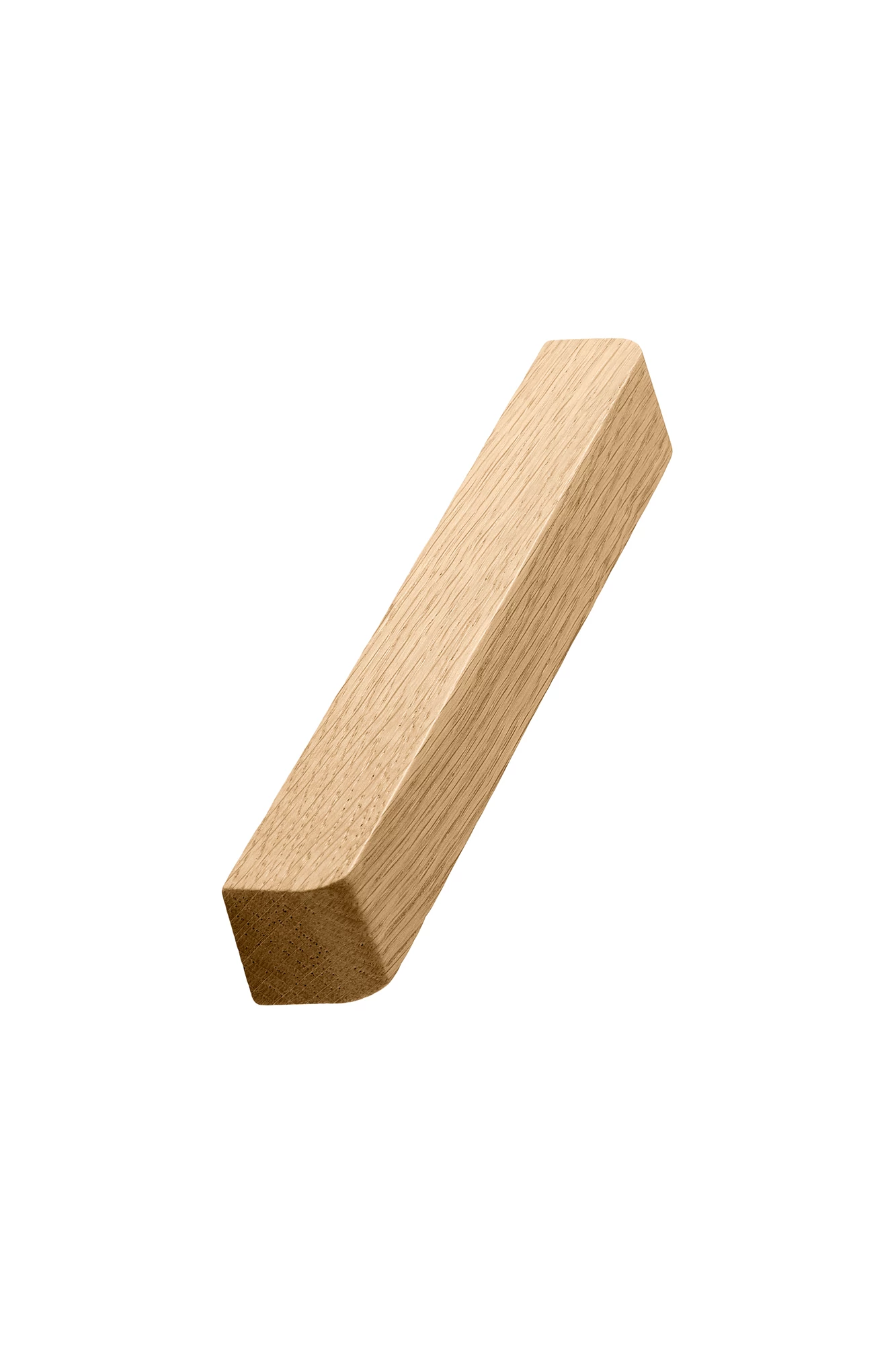 Ez a rendkívül minimalista fogantyútervezés egy egyszerű fadarabból származik négyzet keresztmetszettel. Az elülső és alsó felületek 6°-kal való hátrahajlításával finom dinamizmust kap és megnyílik a felhasználó számára. Egy egyszerű kocka alak, amely mind kerekített, mind éles élekkel rendelkezik, a hátsó részen kivágott bőséges fogáslyuknak köszönhetően válik a legszebb fogantyúvá.