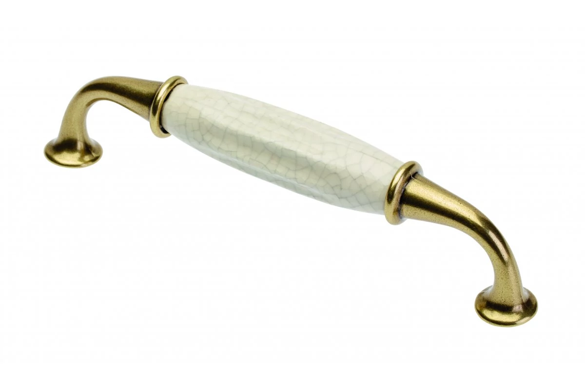Fogantyú porcelán-fém, 128mm, ALATRI, repesztett minta antik bronz
