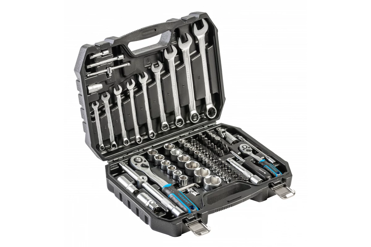 1/4” és 1/2” dugókulcs, csavarhúzóbetét, tartozék és csillag-villáskulcs készlet.