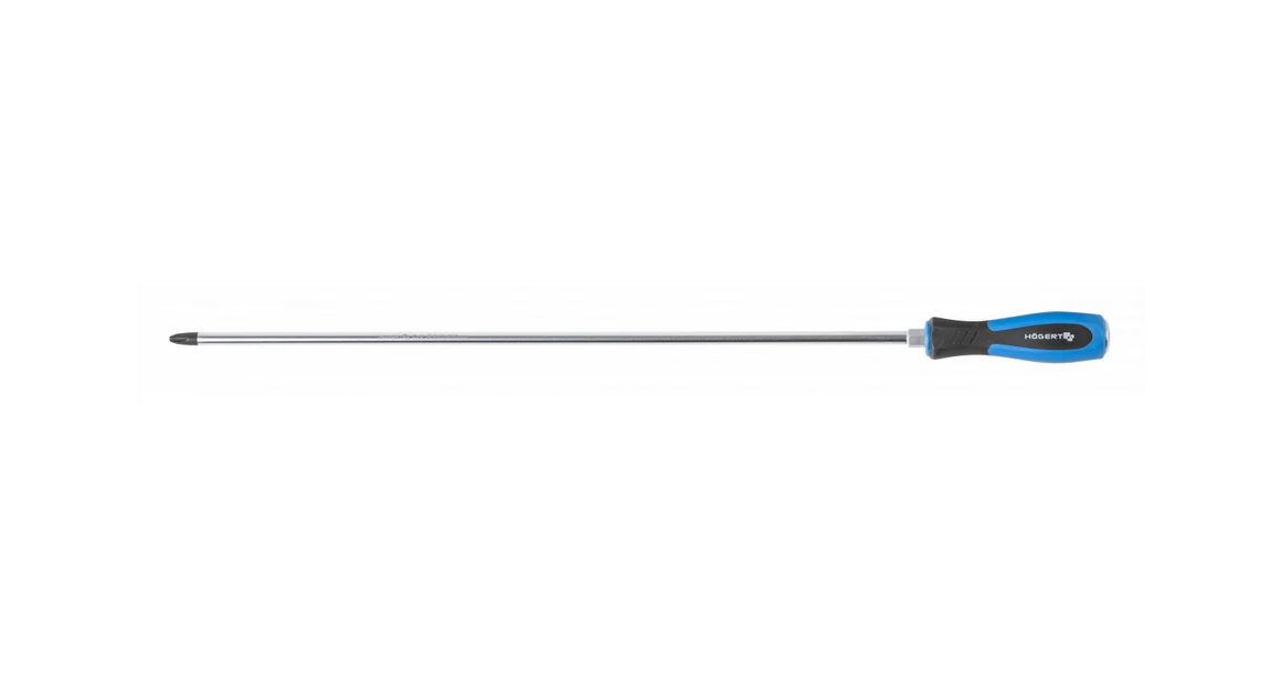 A 45 centiméter hosszú keresztfejű csavarhúzó kiváló eszköz a nehezen hozzáférhető és távoli helyeken lévő csavarokhoz. Strapabíró, alakváltozásnak ellenálló króm-vanádium ötvözetű acélból készült, edzett hegyekkel. A mágneses hegy megkönnyíti és felgyorsítja a csavarokkal való munkát, különösen a kéz ujjai számára nehezen hozzáférhető helyeken. Az ergonomikus kialakítású nyél kényelmes használatot biztosít minimális erőfeszítéssel. A csúszásmentes felület pontos munkát tesz lehetővé, és lehetővé teszi az erő teljes átadását a csavarra. A speciális kialakítás lehetővé teszi a makacs anyák és csavarok kezelését, például kalapálással vagy nagyobb erő kifejtésével lapos kulcs segítségével.