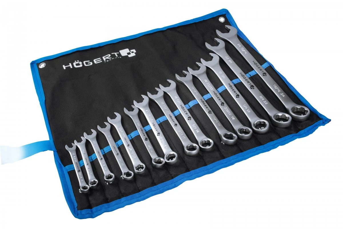 A készlet lapos és csillagkulcsokat, valamint egy szövetlapot tartalmaz, amelyen minden kulcshoz külön zseb található. A kulcsok kiváló minőségű, kemény és tartós króm-vanádium acélból készültek, így rendkívül ellenállóak a korrózióval és a rozsdaképződéssel szemben. A kulcsok ellenállnak a sérüléseknek és az alakváltozásoknak, így a nehezen elérhető helyeken is használhatóak. A készlet praktikus textillapot tartalmaz minden egyes kulcshoz, amely megkönnyíti a szükséges berendezések tárolását, rendezését és gyors elérését.