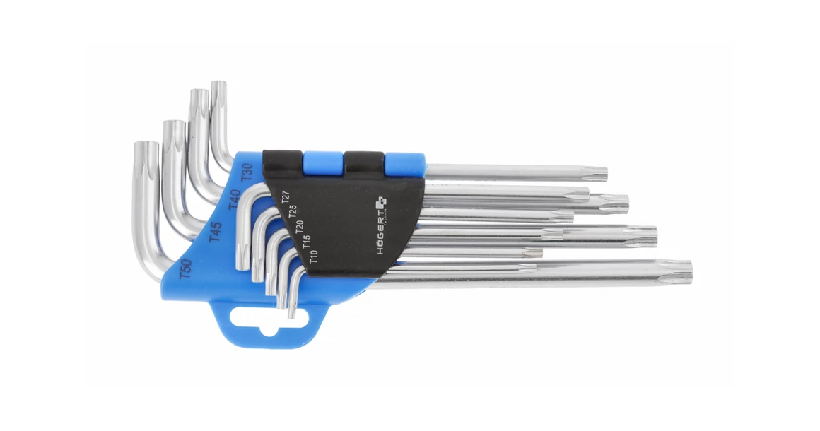 9 darab precíz, hosszú tamper torx kulcsból álló készlet, különösen a szűk helyeken található csavarok lazításához és meghúzásához. Nélkülözhetetlen műhelyekben, felújítási és építési munkálatok során, valamint minden háztartásban.