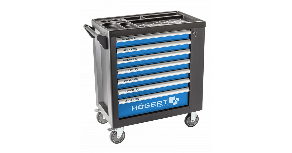 Praktikus és tágas műhelyszekrény 7 fiókkal és oldalsó tárolóval. A szolid és masszív konstrukció műhelykörülmények között is garantálja a hosszú élettartamot, míg a 4 kerék, amelyből 2 forgó, biztosítja a mobilitást, így a szekrény mindig a megfelelő helyre mozgatható. Kiválóan alkalmazható autójavító műhelyekben, valamint a barkácsolás szerelmeseinek garázsába.