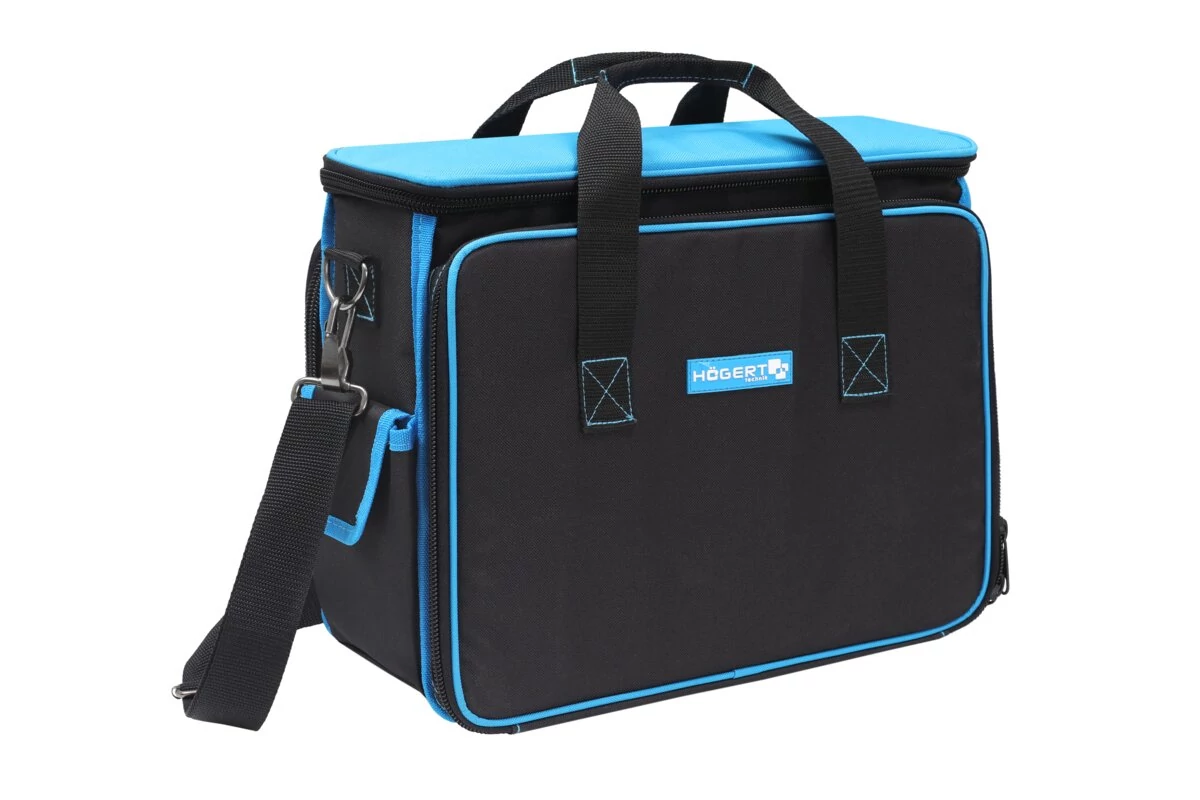 Kiváló minőségű 600D poliészterből készült szerszámtáska, amelyet a kopással és az esetleges sérülésekkel szembeni kivételes ellenállás jellemez. Nem csak a szerkezet könnyedségét és rugalmasságát biztosítja, hanem hatékony védelmet is nyújt a kihívást jelentő időjárási körülmények és a folyamatos munkakörnyezeti használat ellen. Teljesen optimalizált tárolóhely 29 speciális zsebbel, az eszközök precíz rendszerezéséhez valamint a gyors hozzáférhetőség érdekében. A technikai munka jellegzetességeit figyelembe vevő ergonomikus zsebkialakítás garantálja a rendelkezésre álló hely maximális kihasználását.