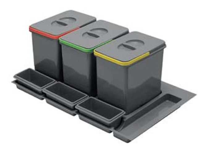 Hulladékgyűjtő GTV Multino 800, szelektív, utólag behelyezhető, 3*15 L edénnyel, fedéllel, tárolókkal