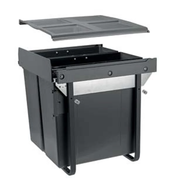 Hulladékgyűjtő GTV Practi Eco 600, szelektív, frontkihúzású, lágy záródás, 2*34 L edénnyel, fedéllel