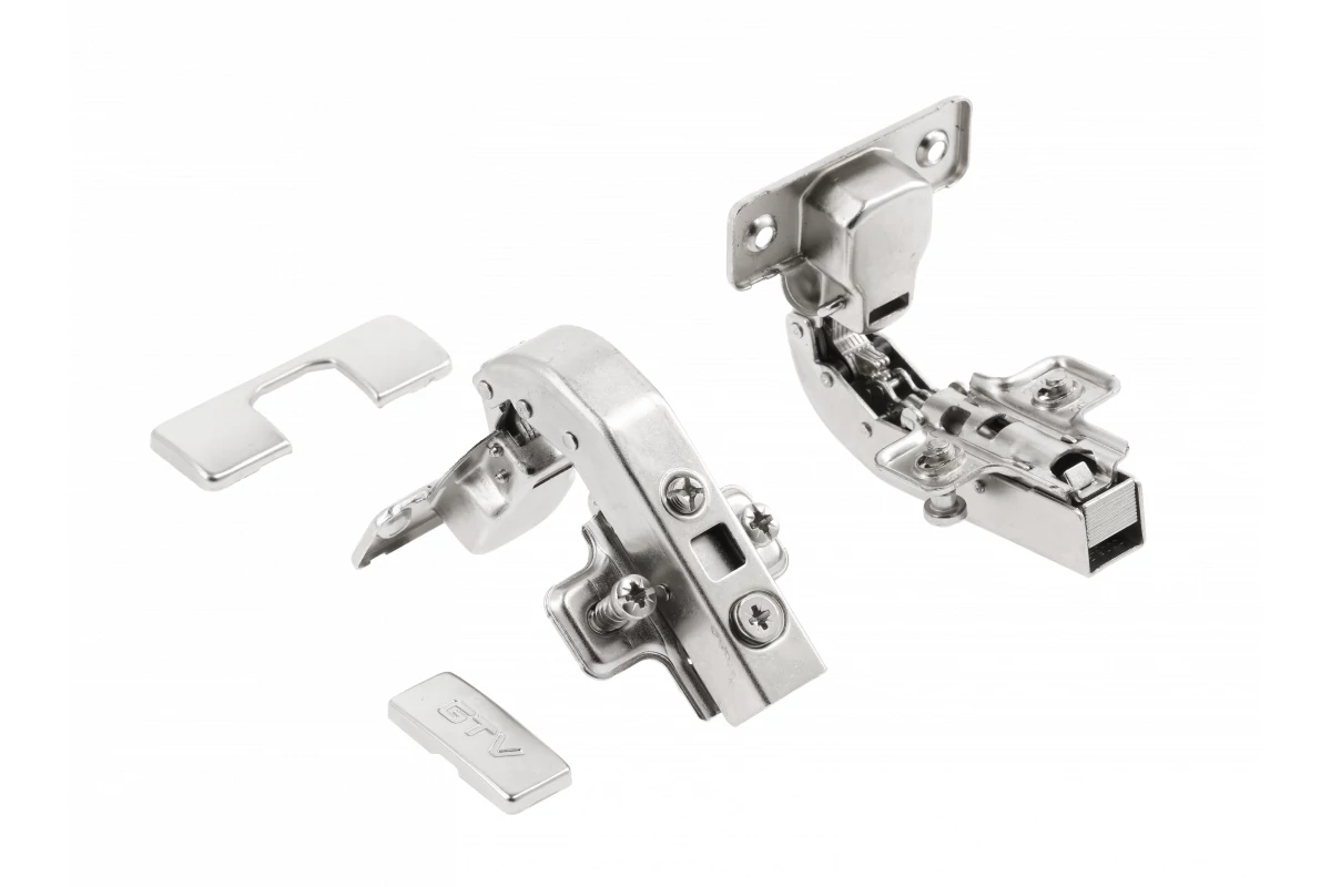 Kivetőpánt, közézáródó, csillapított záródású, klippes, eurocsavar nélküli 4 lyukas talp H=0 INNOVO, 2db os szett, takarókkal