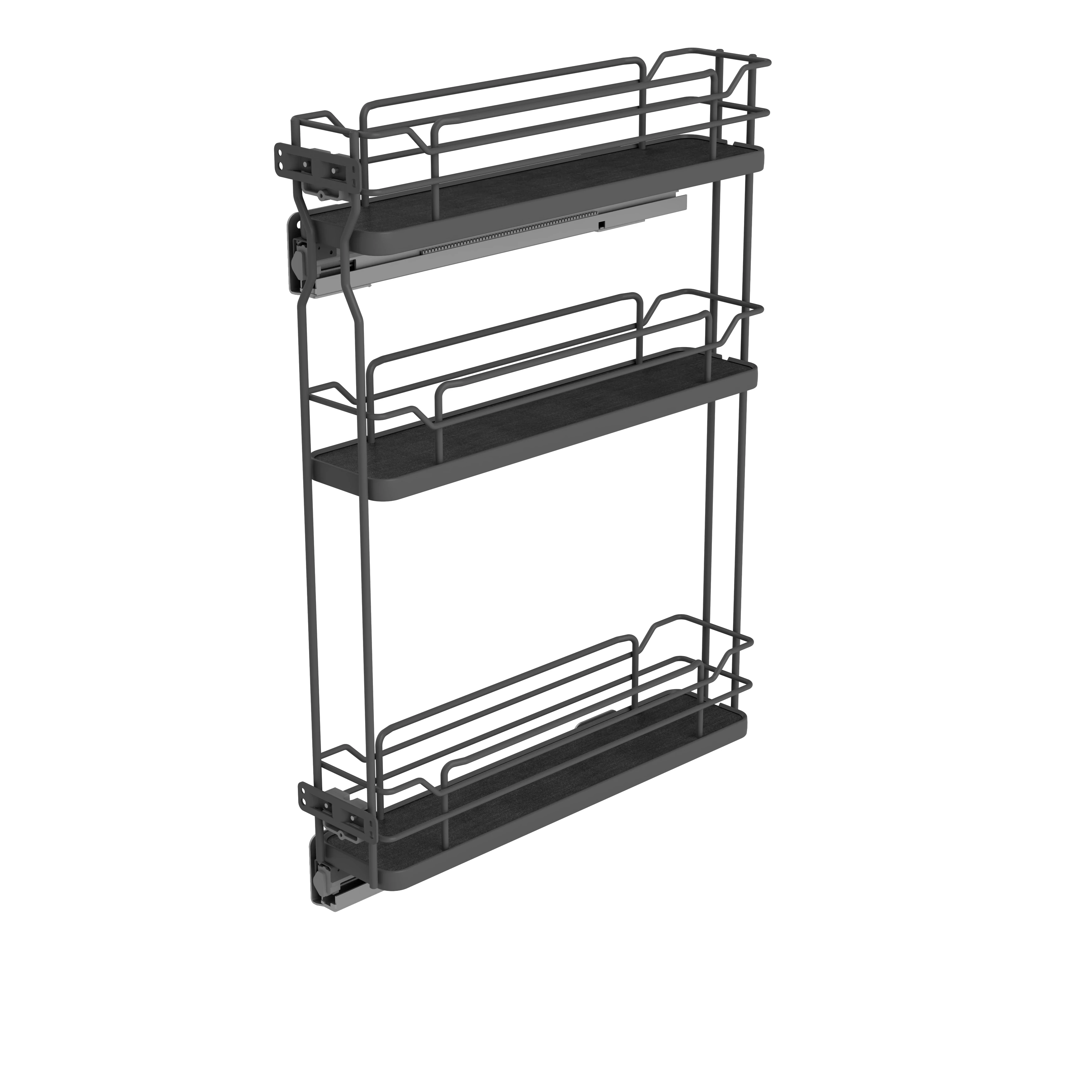 Konyhai fémrács, 150mm, bal oldalra szerelhető, antracit, teljes kihúzás, csillapított záródás, rejtett fióksín, 3 kosár SIGE, Infinity Line 002