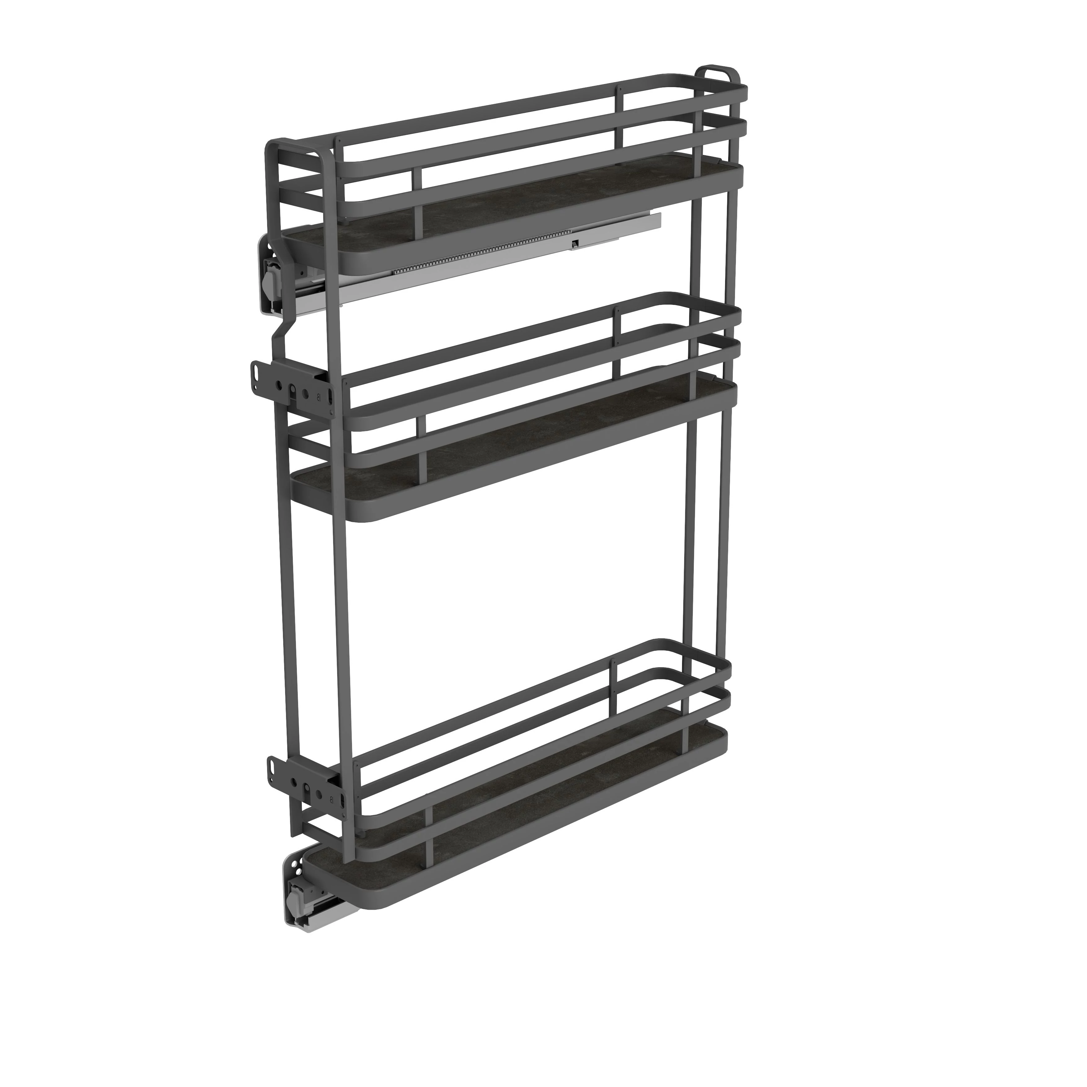 Konyhai fémrács, 150mm, bal oldalra szerelhető, antracit, teljes kihúzás, csillapított záródás, rejtett fióksín, 3 kosár SIGE, Infinity Plus 002