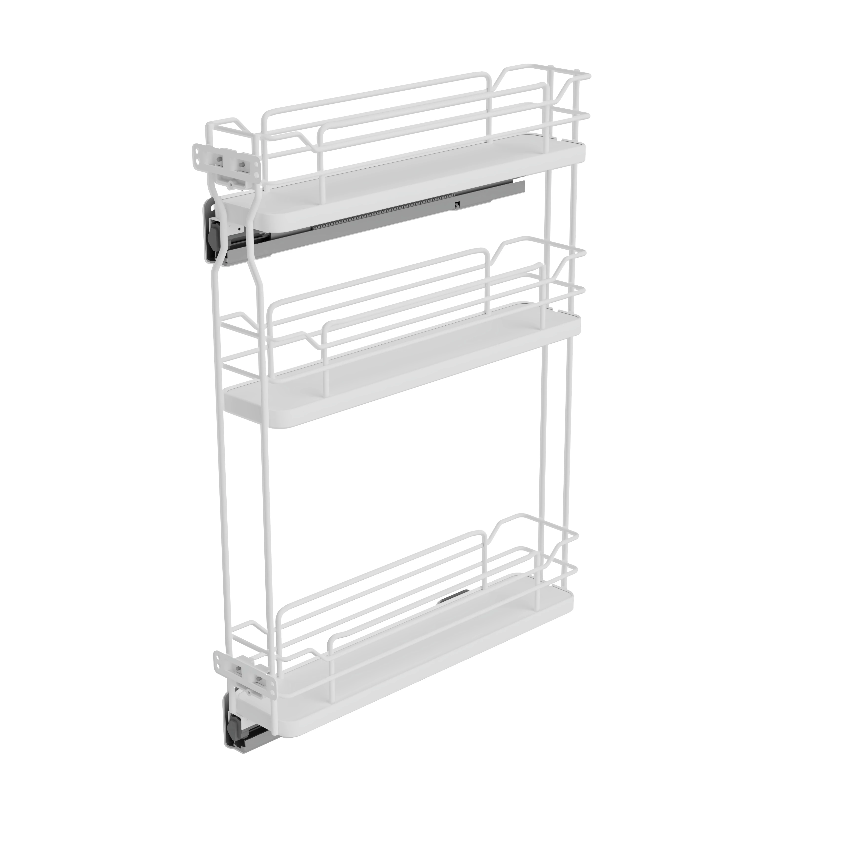 Konyhai fémrács, 150mm, bal oldalra szerelhető, fehér, teljes kihúzás, csillapított záródás, rejtett fióksín, 3 kosár SIGE, Infinity Line 002