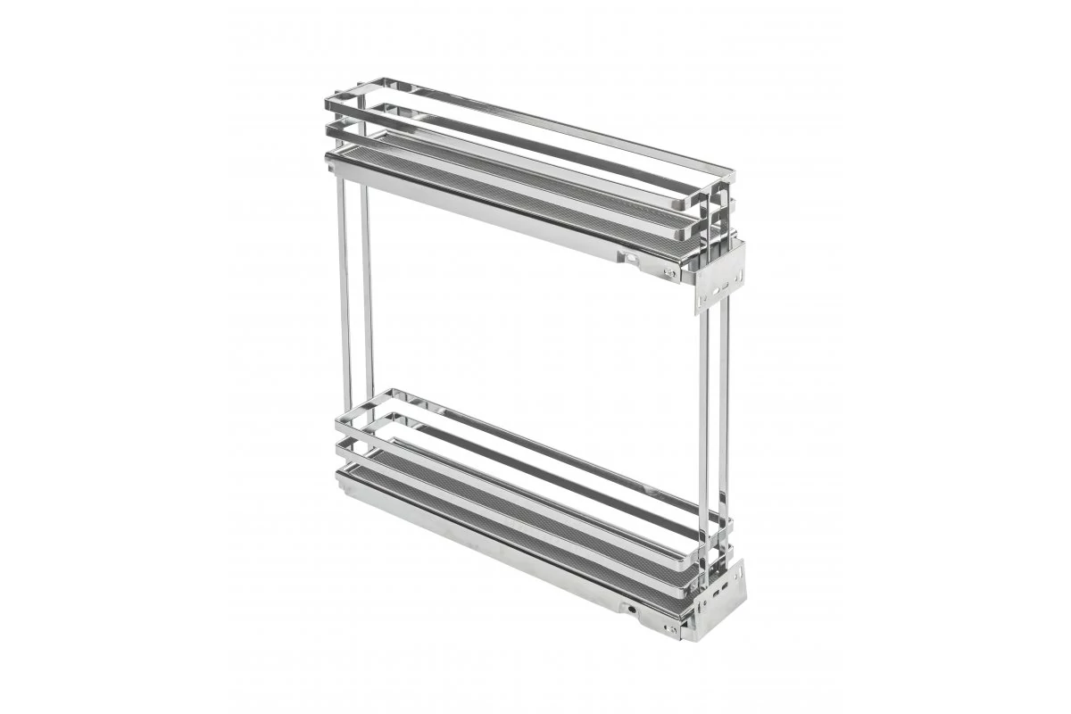 Konyhai fémrács, 150mm, oldalra szerelhető, balos, Króm-Szürke, teljes kihúzású, csillapított záródású, rejtett fióksínnel, Movix Pro