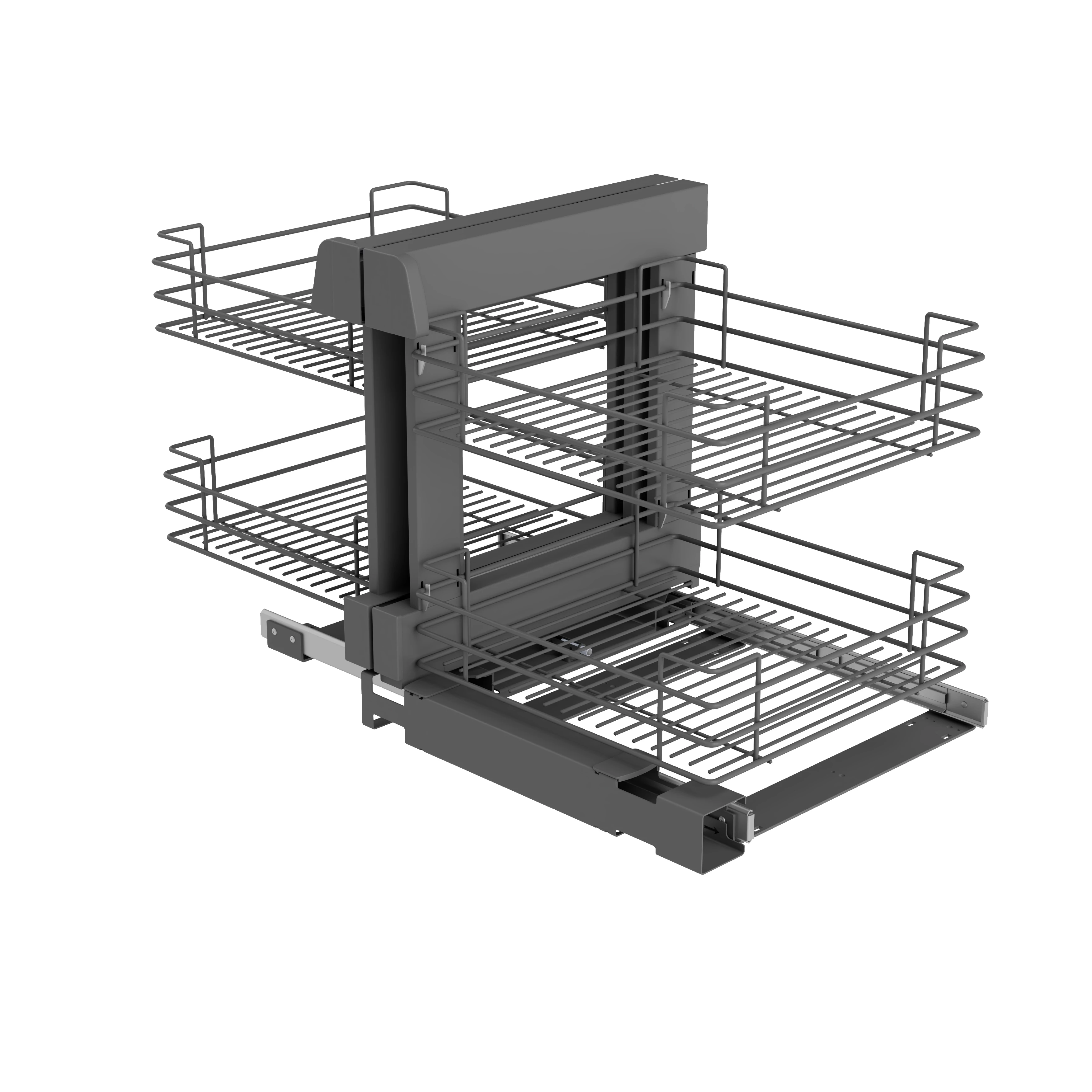 Konyhai fémrács, sarokszekrénybe, teljes kihúzás, csillapított záródás, antracit, univerzális, 1200mm, 600mm ajtó szélesség, Sige Green Line 340