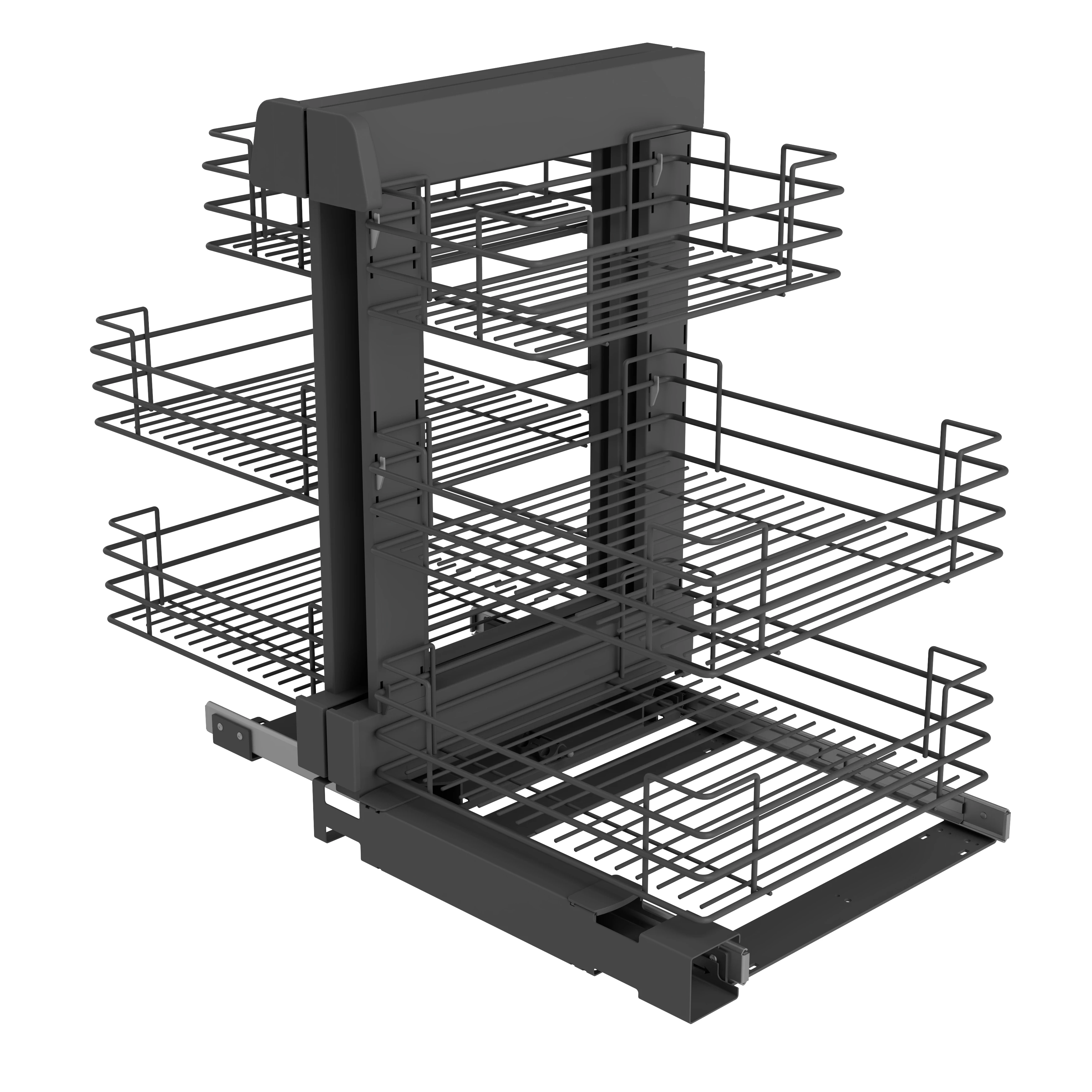 Konyhai fémrács, sarokszekrénybe, teljes kihúzás, csillapított záródás, antracit, univerzális, 900mm, 450mm ajtó szélesség, Sige Green Line 340