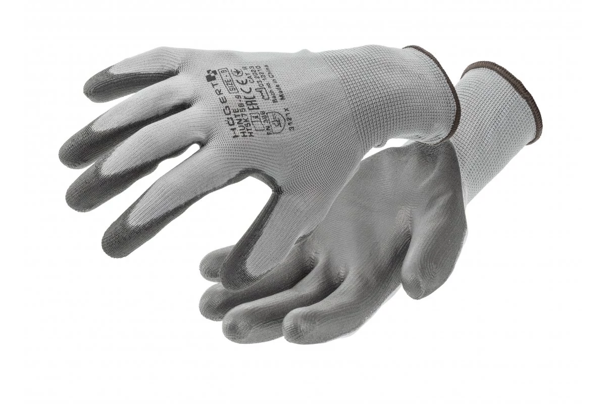 - alapanyag: poliuretán bevonatú poliészter szövet; - kopásállóság; - szakadásállóság; - jó tapadás az ujjérzet biztosítása mellett; - kézre símuló, rugalmas; - csuklószorító; - megakadályozza a szerszámok kicsúszását a kezekből.
