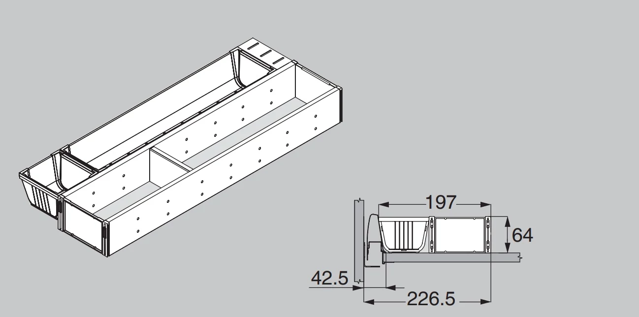Rozsdamentes acélból készült evőeszköztartó. Szerszám nélkül behelyezhető és mosógatógépben mosható.