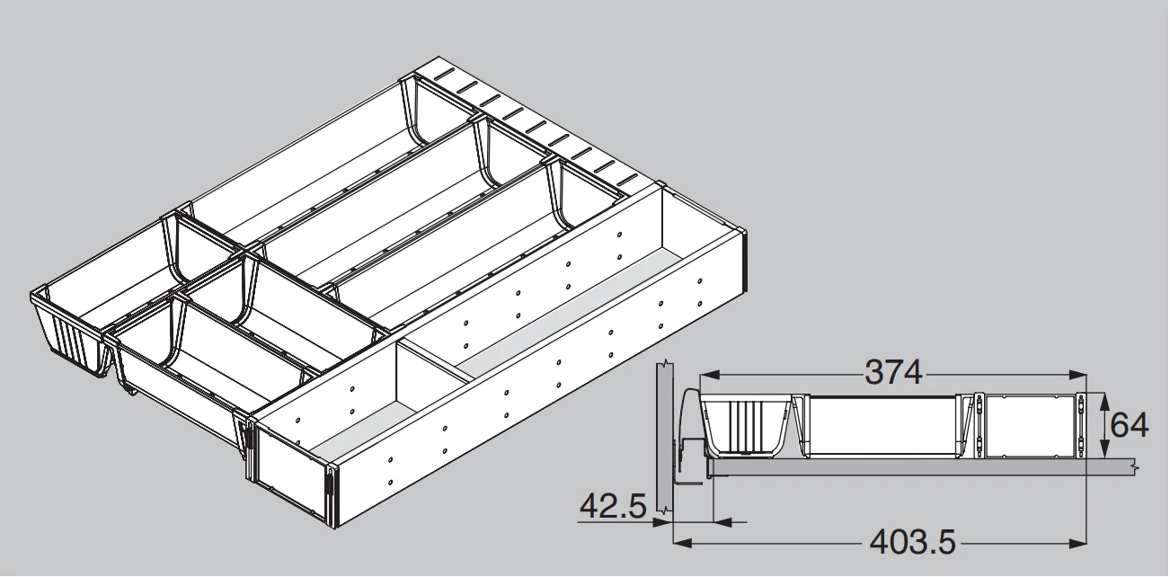 Rozsdamentes acélból készült evőeszköztartó. Szerszám nélkül behelyezhető és mosógatógépben mosható.