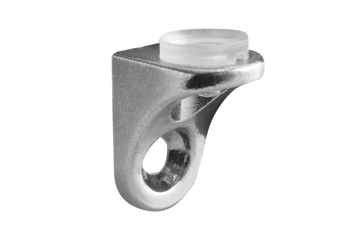 Csavarral rögzíthető támasztó, ZnAl ötvözetből készült, króm színben. Üvegpolcok rögzítésére tervezve.