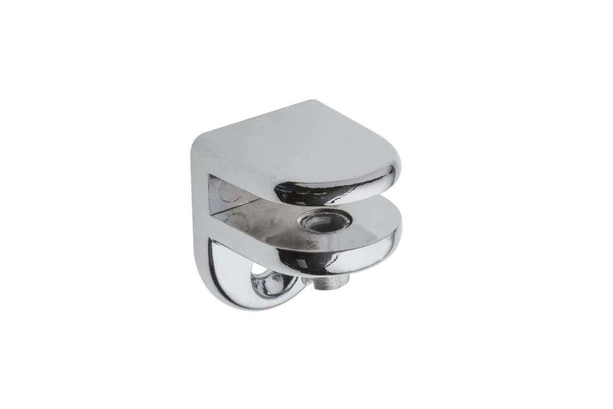 Csavarral rögzíthető támasztó, ZnAl ötvözetből készült, króm színben. Legfeljebb 5 mm vastagságú üvegpolcok rögzítésére tervezve.