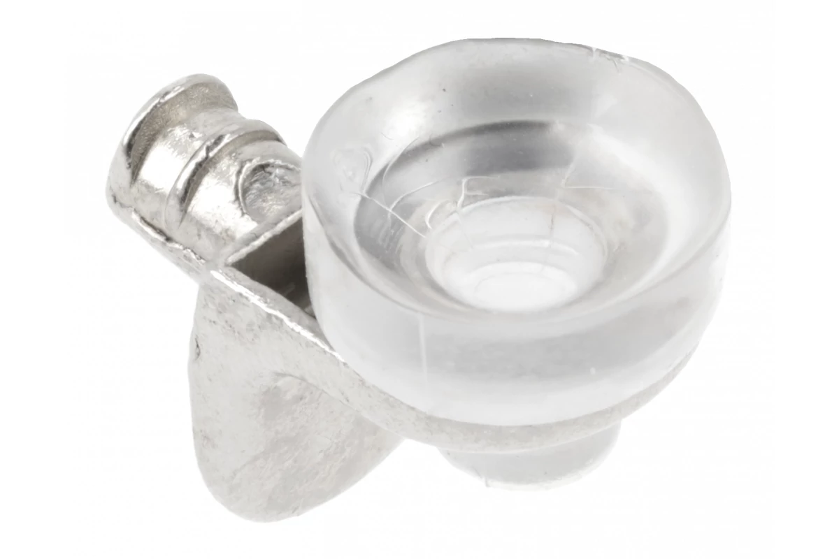 Bepattintható támasztó, ZnAl ötvözetből készült, króm színben. Üvegpolcok rögzítésére tervezve.