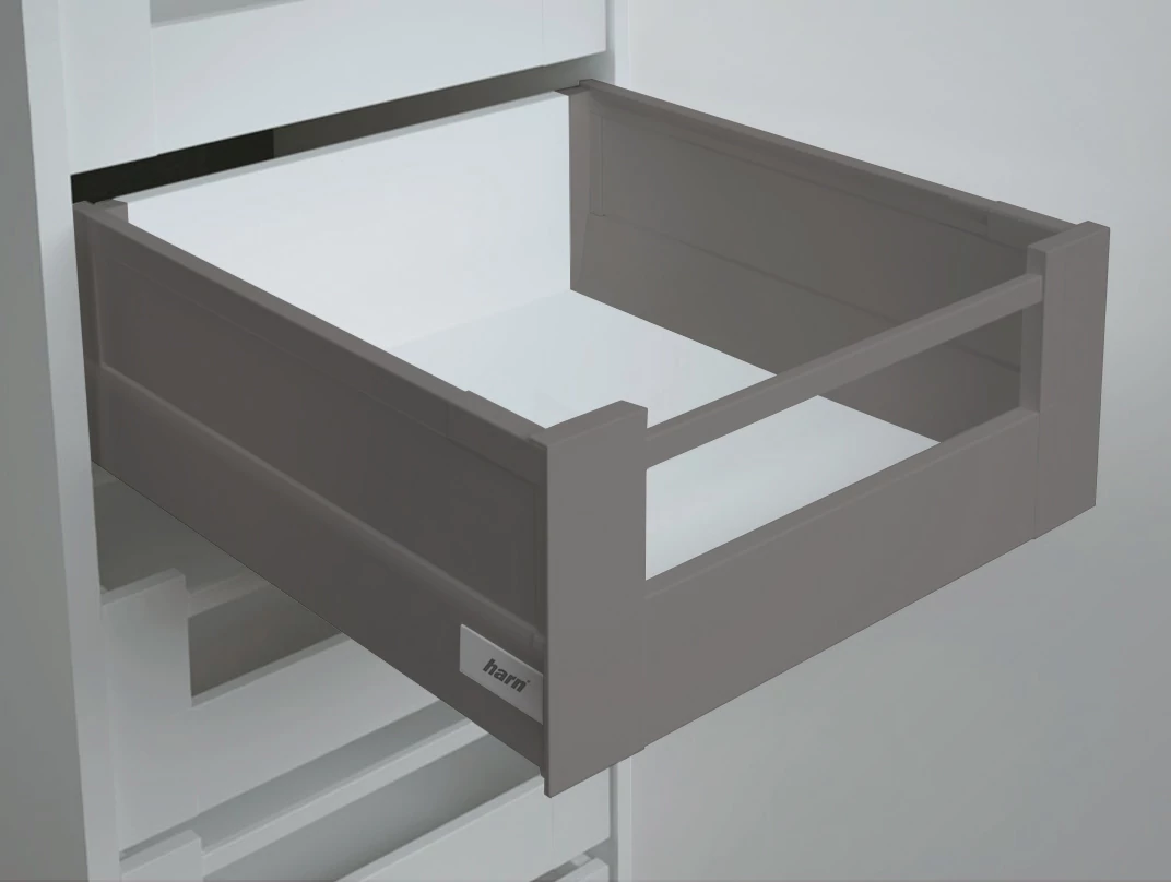 Fiókoldal   RITMA CUBE belső fiók,  HSE, oldalmagasítós, szögletes korláttal, metál szürke, 400mm, 35kg