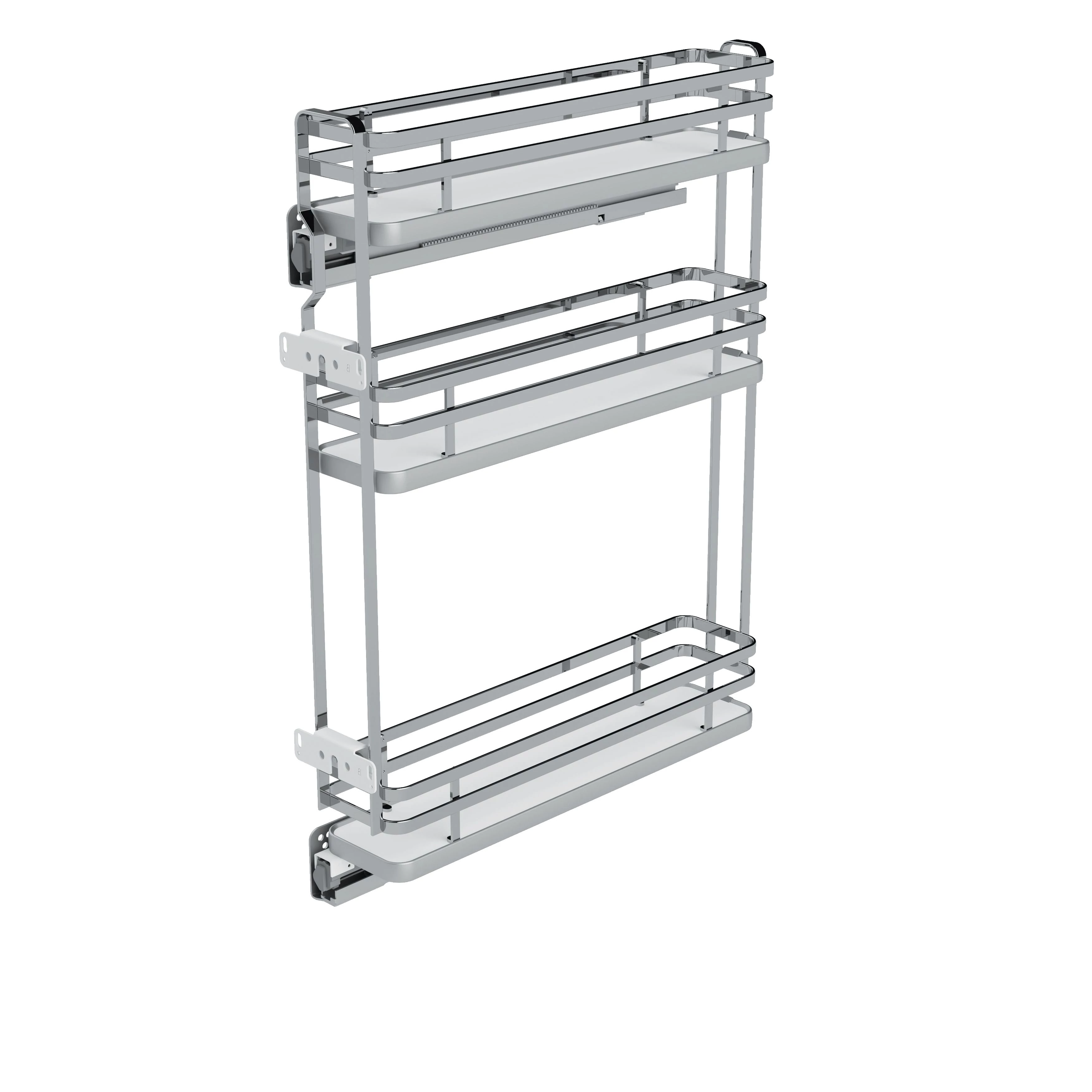 Konyhai fémrács, 200mm, bal oldalra szerelhető, króm-fehér, teljes kihúzás, csillapított záródás, rejtett fióksín, 3 kosár SIGE, Infinity Plus 002