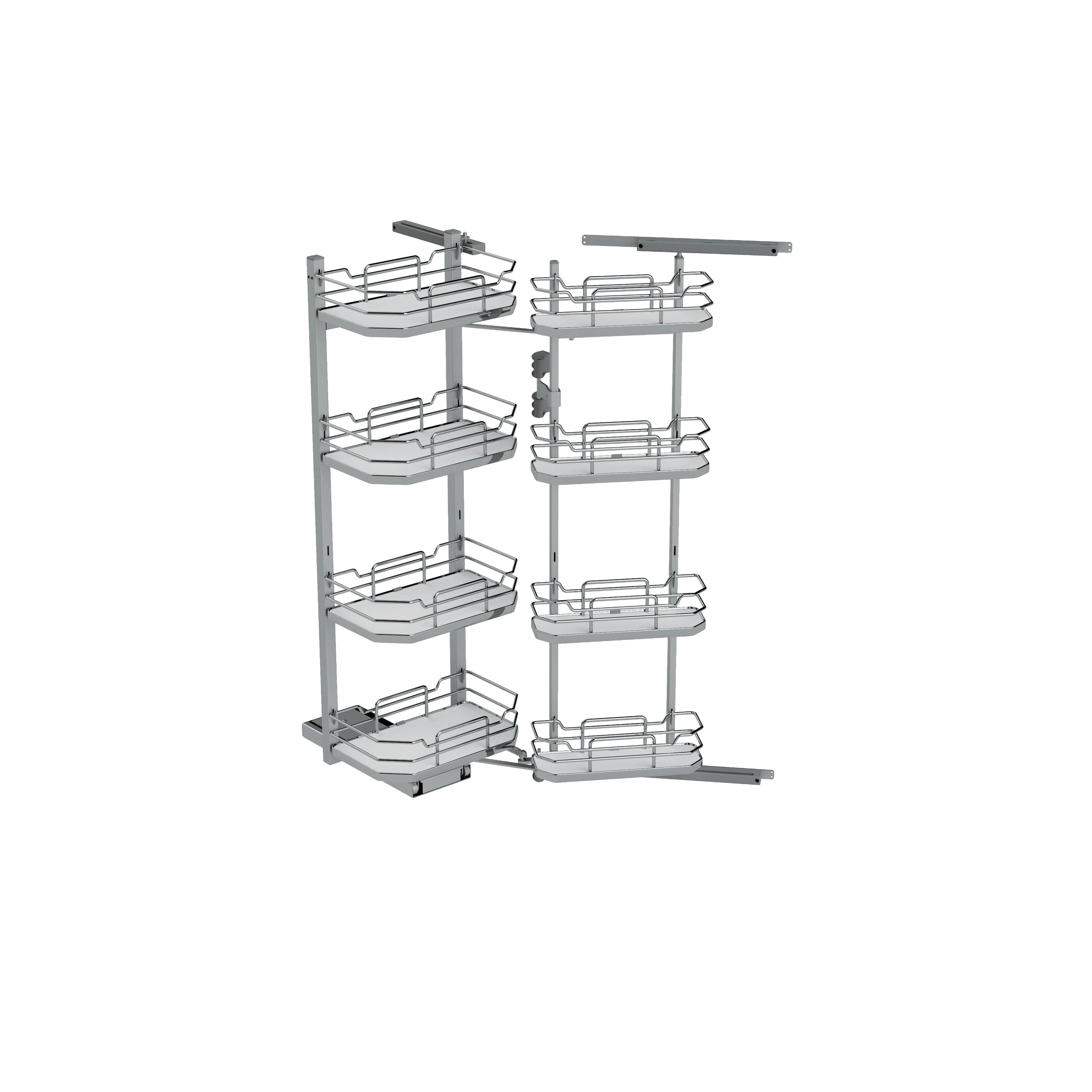 Az ajtó nyitásával a kisebb polcsor a fronttal együtt kinyílik, míg a belső polcsor előrébb jön.