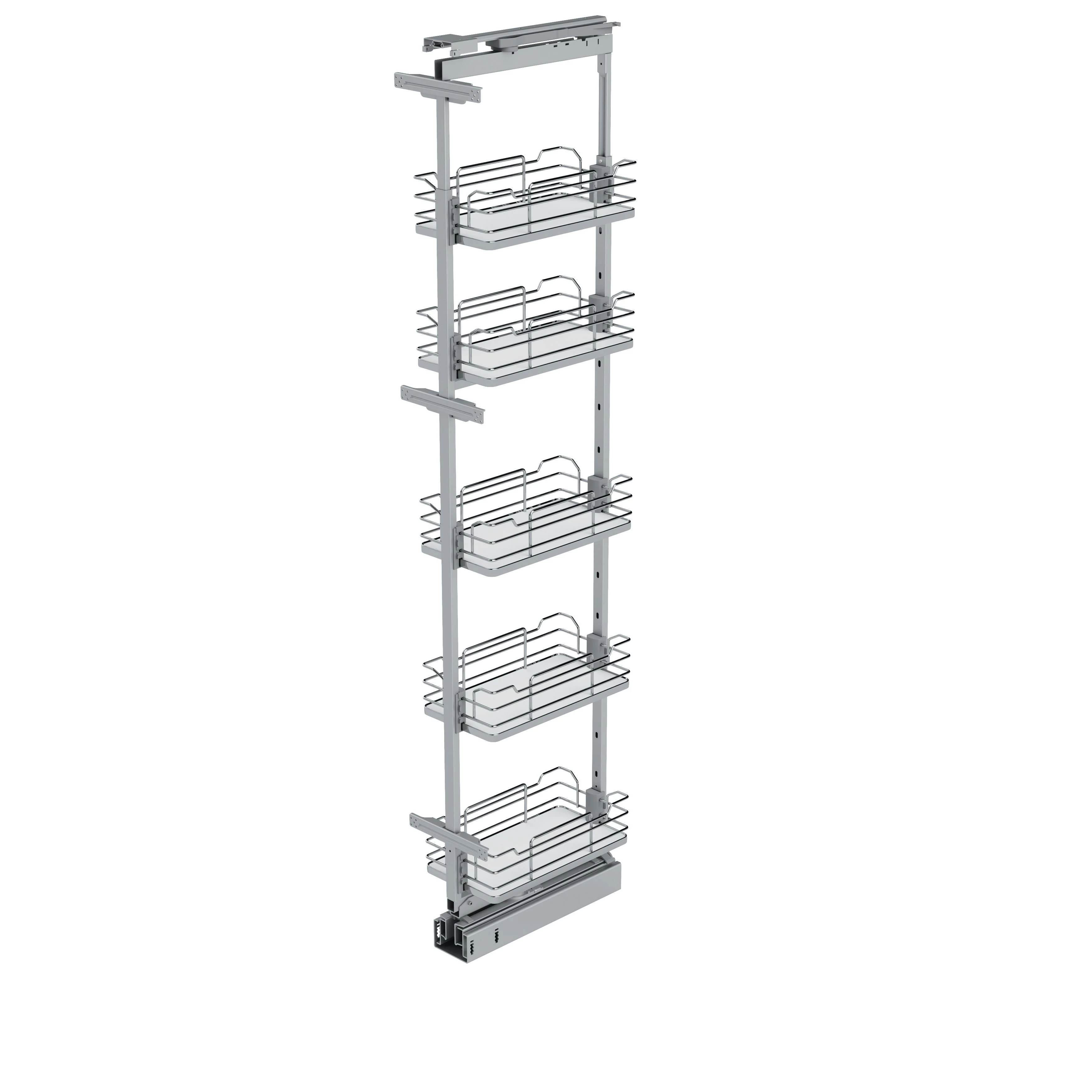 Konyhai fémrács, kamravasalat, 400mm, króm-fehér, teljes kihúzású, csillapított záródás, 1880-2180mm, 5 kosár SIGE, Infinity Line 265