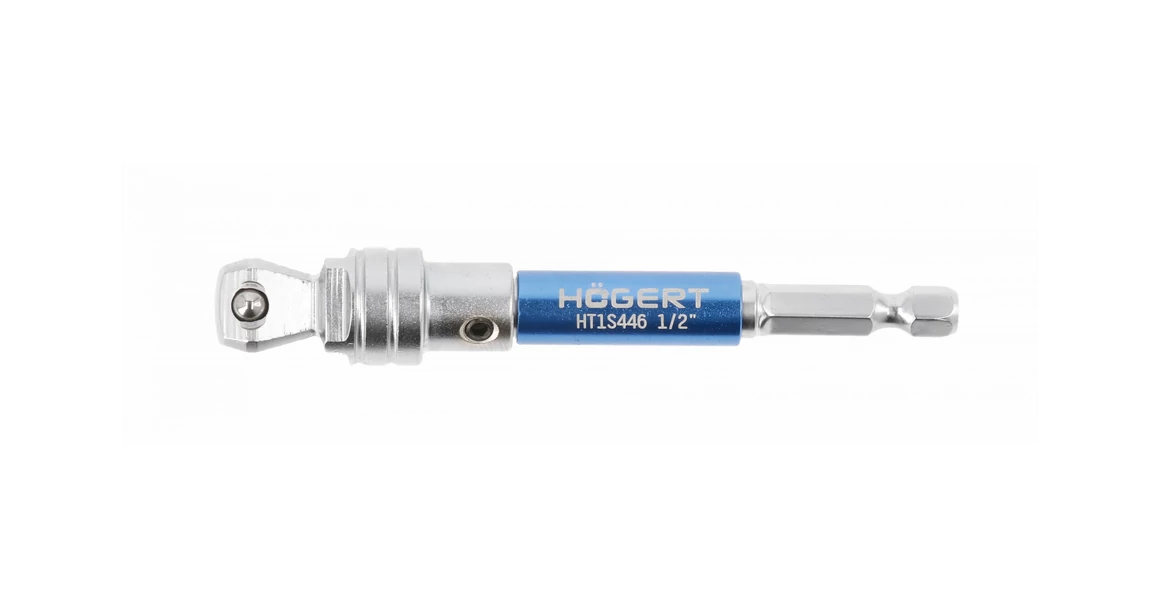 1/2”-os bithegy-tartó 1/4”-os rögzítéssel vezetékes és akkumulátoros fúró-csavarbehajtó gépekhez. A gömbölyű kialakítású hegy lehetővé teszi a nehezen elérhető helyeken végzett munkát jelentősen megkönnyítő szögben végzett munkavégzést. . króm-vanádium ötvözetű acél alapanyag; . a vég gömb alakú kialakítása lehetővé teszi a hegy bármilyen szögben történő alkalmazását; . a 100 mm hosszú nyél megkönnyíti a nehezen elérhető helyeken végzett munkát; . a munkavégző vég elfordulása blokkolható a merev egyenes munkavégzéshez; . a házban található forgó hüvely megtartja az adaptert az eszköz munkája közben.