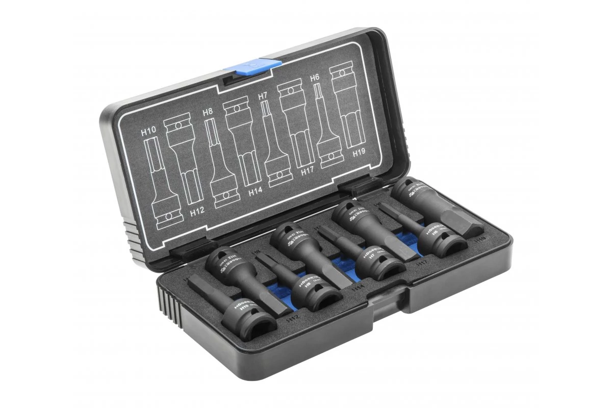 Szerszám Högert Pneumatikus bit kulcs szett, hex, 8db-os, 1/2", H6 - H19, CrMo, tárolóban